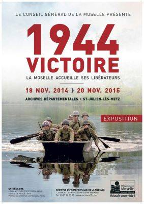Le Conseil Général de la Moselle présente "1944, victoire ! La Moselle accueille ses libérateurs", une exposition sur la Libération du département de la Moselle. Elle est à découvrir aux Archives départementales à Saint-Julien-lès-Metz du 18 novembre 2014 au 20 novembre 2015 et au Centre des Archives Industrielles et Techniques de Saint-Avold du 12 janvier au 31 juillet 2015.