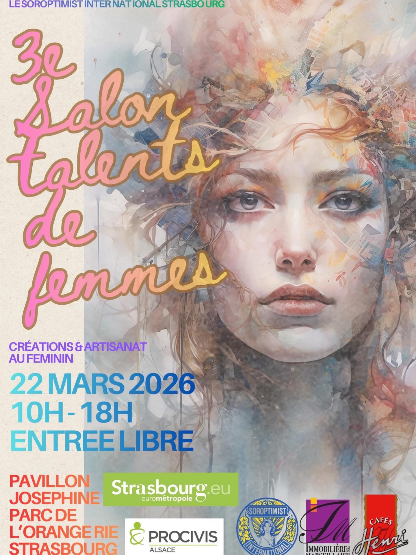 Nous avons le plaisir de vous annoncer la 3e édition du Salon Talents de femmes qui se tiendra le 22 mars 2026 de 10 h à 18 h au Pavillon Joséphine du Parc de l’Orangerie à Strasbourg.