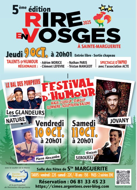 alors venez encore une fois RIRE EN VOSGES et passez un moment HILARANT ET COMIQUE entouré de partages festifs et conviviaux auprès de nos équipes de PETITE RESTAURATION ET BAR, ainsi qu’un partage avec nos artistes pour une séance de dédicaces.