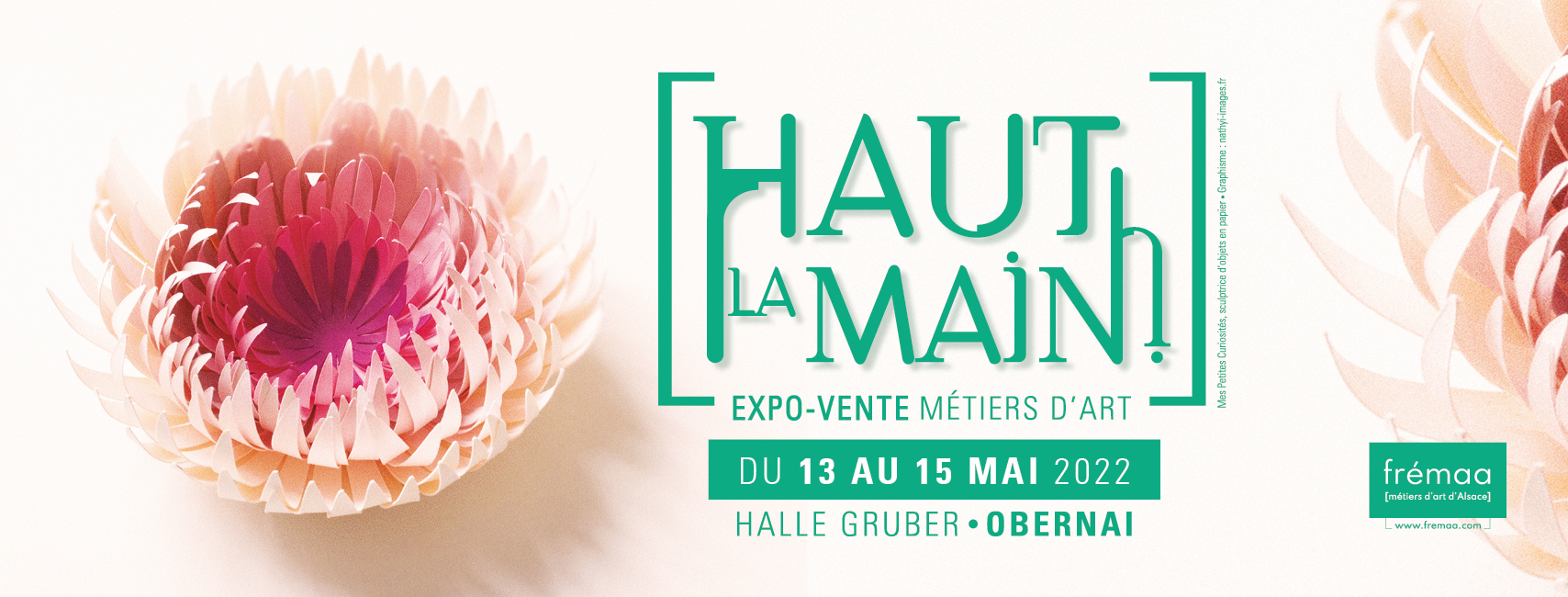 L’expo-vente printanière [Haut la main !], organisée par la frémaa (Fédération des métiers d’art d’Alsace), revient pour une 5e édition à la Halle Gruber à Obernai du 13 au 15 mai 2022 pour découvrir des créateurs d’exception. Une quarantaine de professionnels des métiers d’art viennent présenter au public leurs dernières créations, en pièces uniques ou séries limitées, en sculpture, bijoux, arts de la table, luminaire, mobilier, céramique et arts graphiques.