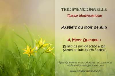 ? Atelier mensuel de mouvement et danse biodynamique, samedi 18 juin sur Metz Queuleu (adresse exacte donnée un peu avant l'atelier) de 10h30 à 12h00.