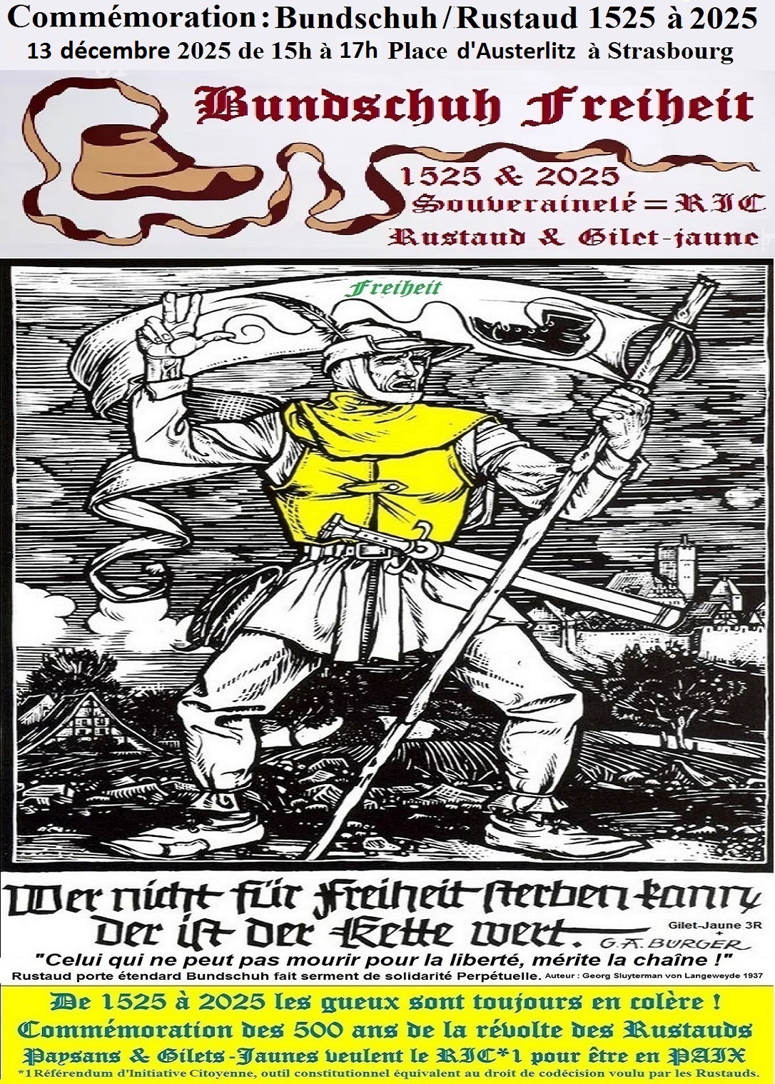 Des Alsaciens & Lorrains se recueilleront publiquement en invitant les urbains à faire renaitre l’esprit Bundschuh pour être libre & en paix.