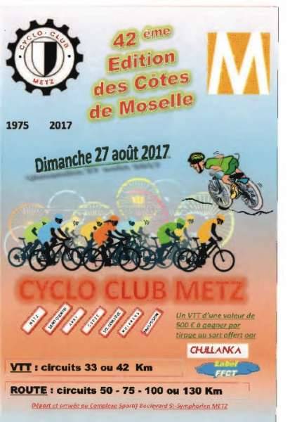 Le Cyclo-Club de Metz organise son 42e circuit des côtes de Moselle Route et VTT, destiné aux amoureux de la petite reine, à partager en groupes, en famille ou seul. Ce n’est pas une compétition, chacun roule à sa main et il n’y a pas de classement à l’arrivée.