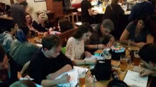 Ca se passe toujours au Bar Le Grincheux qui propose un happy hours jusqu’à 20h30. Le principe est le même: on vient pour dessiner, boire un coup, discuter et échanger dans la bonne humeur, sans contrainte. On est là pour se faire plaisir
