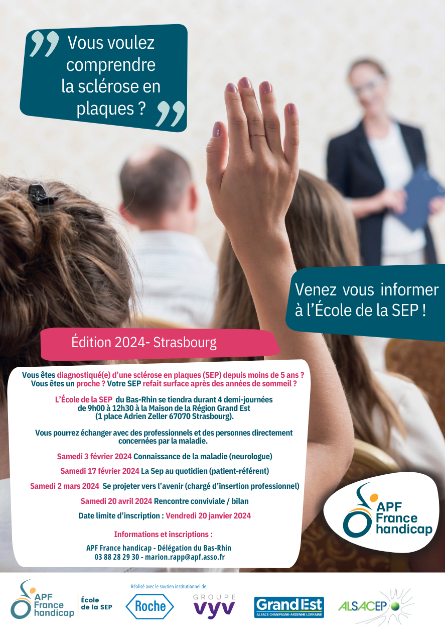 Menée par la délégation du Bas-Rhin avec Isabelle Scheuer, élue du CAPFD67 et patient-référent cette initiative consiste à porter une Écoles de la SEP de 4 séances dès 2024. Dans un cadre bienveillant, l’École de la SEP apporte des éléments de réponses aux concernées.