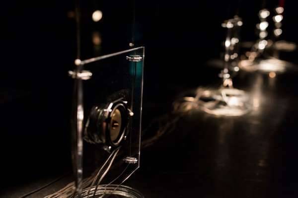 Un écran sonore et lumineux de 5 mètres de haut, constitué de 16 haut-parleurs, une danseuse muée en instrument cinétique, deux musiciens (contrebasse et percussions). Une exploration sensorielle de l’empreinte sonore et visuelle d’une forme, du geste, du mouvement. Inspirée par la partition dessinée de Rainer Wehinger à l’écoute de la pièce ARTIKULATION de Giorgy Ligeti, EXARTIKULATIONS en tire une lecture multiple : Instrumentale, gestuelle et électronique. Le corps sur scène, incarnant un instrument musical autonome, développe sa propre interprétation. Il interpelle celle des instrumentistes et s’y confronte. L’électronique s’inscrit dans l’espace de ce dialogue. Chacun projette sur la toile de haut-parleurs son interprétation sonore de la partition. Cette vision bouscule la lecture de l’oeuvre initiale et crée une désarticulation du langage. Elle déploie de nouveaux champs à explorer.