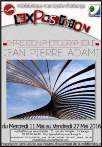 La médiathèque municipale d’Uckange propose une exposition de Jean Pierre ADAMI intitulée Expression Photographique.