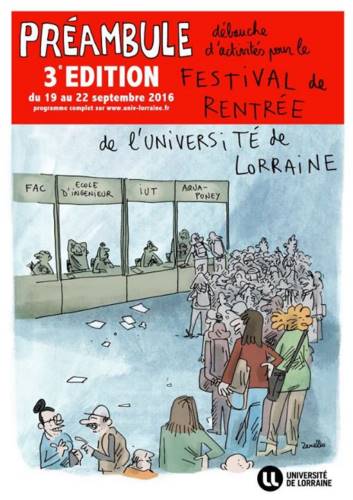 L’Université de Lorraine lance la 3e édition de son festival de rentrée : Préambule. Du 19 au 22 septembre 2016, les étudiants de l’Université découvriront de manière ludique, conviviale et décalée l’ensemble des services dédiés à la vie étudiante sur le campus du Saulcy et Bridoux à Metz ainsi que le Campus Lettres et Sciences Humaines (CLSH) à Nancy.