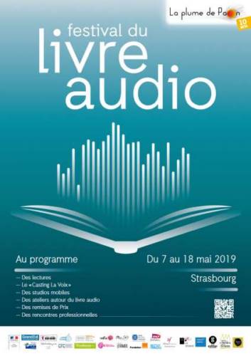 A travers différentes actions, le Festival du livre audio donne à découvrir le livre audio dans ses dimensions culturelles, sociales et pédagogiques : Plume de Paon des Lycéens, Casting La Voix, tables rondes professionnelles et conférences, dîner littéraire, ateliers de découvertes des coulisses du livre audio, Studio Mobile, Prix du Public, Nuit du livre audio, permettront au grand public et aux professionnels du livre de (re)découvrir le livre audio, objet littéraire à part entière. La manifestation se tiendra dans différents lieux : Médiathèque André Malraux de Strasbourg, Espace Django, Centre de Culture numérique de l’Unistra, Maison de la Région Grand Est, Graffalgar, Centre de création pour l’Enfance de Tinqueux...