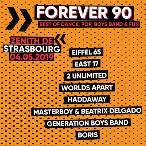 FOREVER 90 c’est le MEGA SHOW années 90 à Strasbourg.8 concerts de 30 à 45 minutes par artiste.