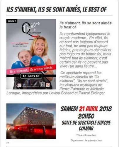 Ce spectacle reprend les meilleurs sketchs de "Ils s’aiment, ils se sont aimés", les disputes mythiques de Pierre Palmade et Michelle Laroque, interprétées par Lovisa Schaad et Pascal Erdinger