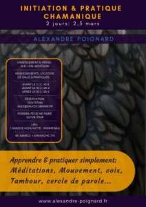 Sur deux jours, nous allons simplement apprendre des bases de voyages chamaniques, méditer, nous allons bouger, écouter, utiliser des tambours, parler, découvrir, nous faire surprendre, bien dormir, bien manger, nous rencontrer, rencontrer l’autre à travers le regard ou le mouvement et tout ça en conscience, et, finalement nous ne ferons que vivre un peu plus.