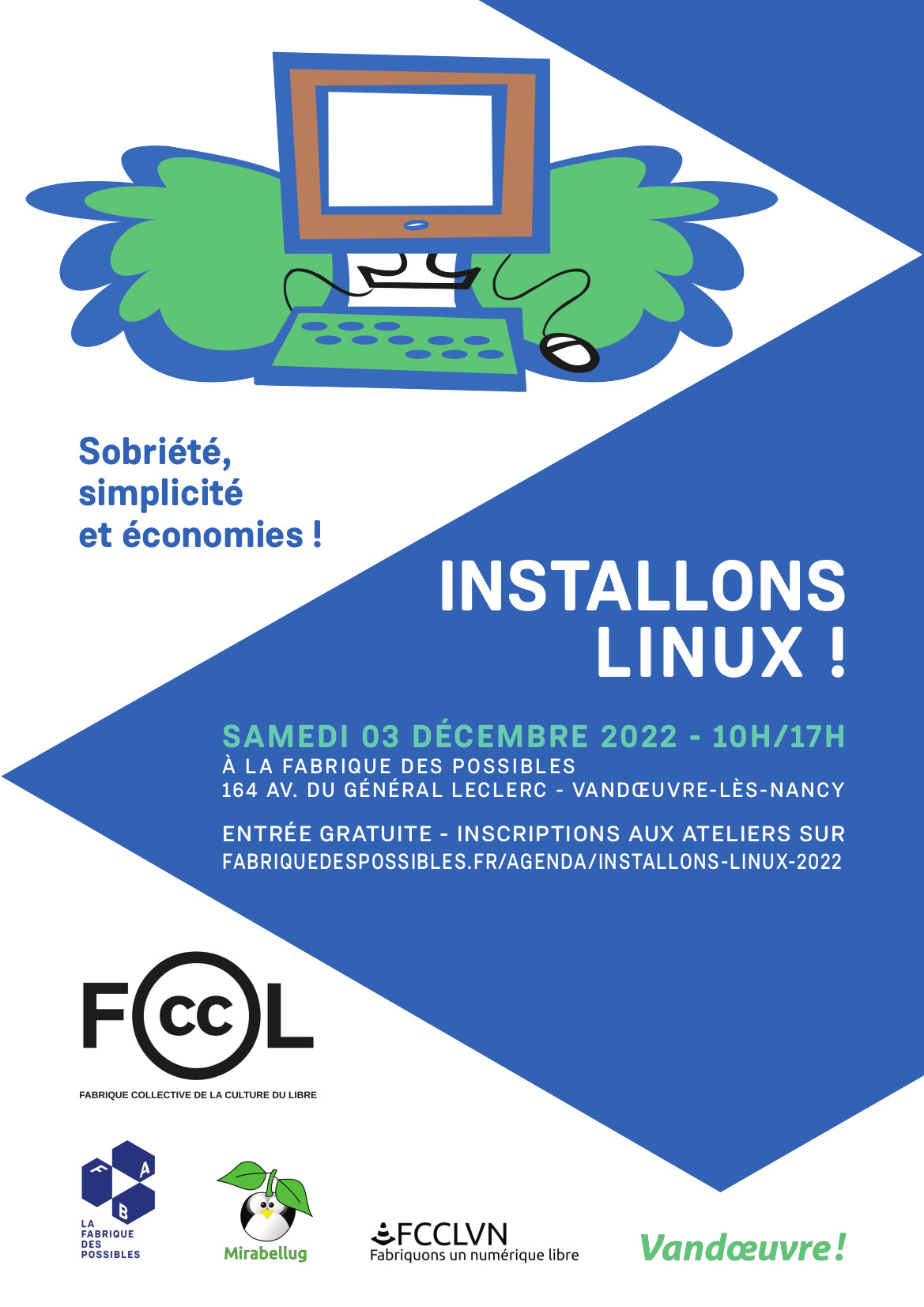 • Atelier aide à l’installation de logiciels libres (sur Linux, Windows et MacOS), toute la journée