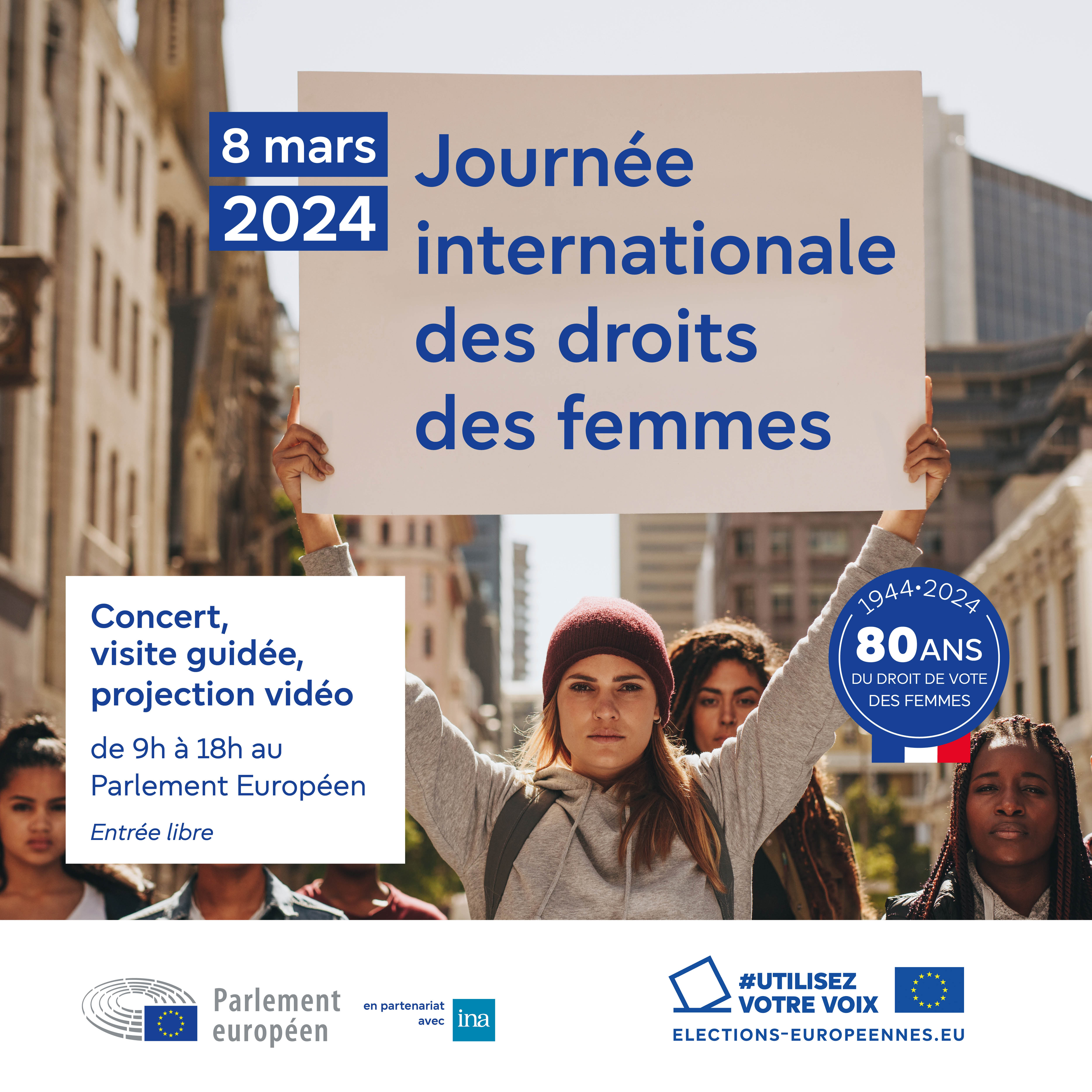 Le vendredi 8 mars 2024, à l'occasion de la Journée internationale des droits des femmes, l'Unité de liaison avec les visiteurs et les citoyens propose sur le circuit visiteurs du Parlement européen à Strasbourg, plusieurs activités pour une journée d'action, de rassemblement et de sensibilisation autour des luttes pour les droits des femmes.
