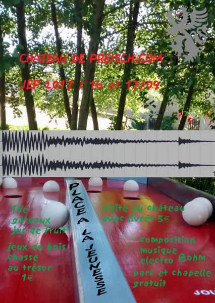Nous avons répondu au thème des Journées Européennes : Jeunesse et Patrimoine par une sonorisation inédite de certains espaces du domaine. Le grand couloir du château, la chapelle, l’escalier classé et l’ancien potager seront sonorisés au moyen d’une musique expérimentale composée par l’arrière-arrière-petit-fils de Charles Joseph de Gargan. Vous pourrez ainsi partager le ressenti de la jeunesse face au patrimoine.