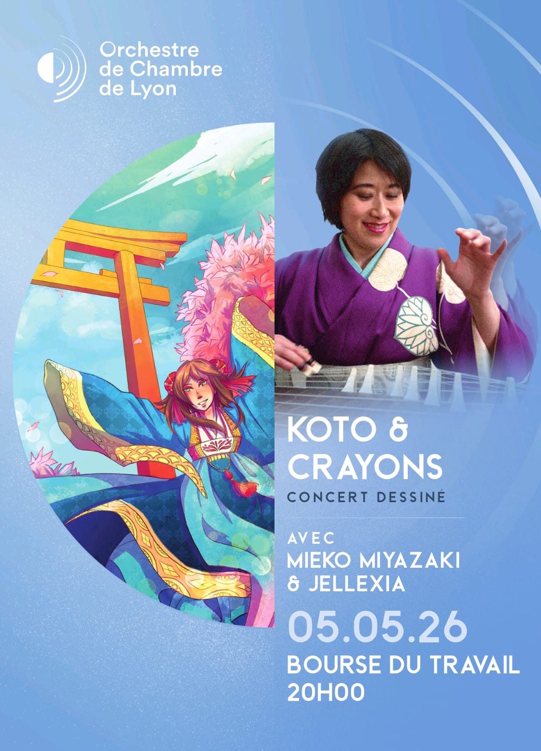 L’Orchestre de Chambre de Lyon invite Mieko Miyazaki, joueuse de koto de renommée internationale, ainsi que Jellexia, la dessinatrice autrice de la bande dessinée « Ma senpai est un homme ».