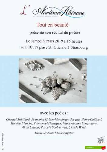 propose son récital de poésie annuel avec plusieurs auteurs de l’Académie accompagnés en musique par Jean-Marie Angster.