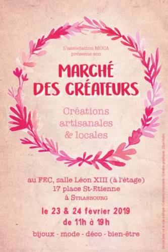 L’association MOCA vous invite à son marché des créateurs locaux . Les 23 et 24 février , de 11h00 à 19h00,17 place saint au FEC , retrouvez des créations en décoration, ,mode,bijoux et accessoires, photographie, céramique, papeterie... Pour le bonheur de votre amoureux(se) ou le vôtre. Plus de 20 exposants seront présents pour cette exposition de créations issues du fait main. Entrée libre.
