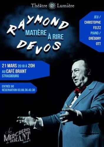 Dans le cadre des Mercredis du Brant, la Compagnie Théâtre Lumière jouera ’Matière à Rire’ de Raymond Devos au Café Brant à Strasbourg, le mercredi 21 mars à 20h.