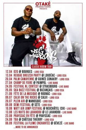 « La Monnaie », « Lève-toi, bats toi », « Le Bilan », « Tout le monde debout » … Que la fête commence ! Jacky et Ben-j qui forment les Neg’ Marrons, ont écrit une partie de l’Histoire du hip-hop et du reggae français tout en emmenant leur musique au-delà des frontières établies. En plus de leur carrière d’artistes : 4 albums, membres du collectif Secteur Ä (Doc Gyneco, Passi, Stomy Bugsy, Ärsenik…) , le binôme créa aussi le fameux label Première Classe. Dénicheur de talents (PC1, PC2, Pit Baccardi, Tandem,…) projets cumulant de multiples disques d’or et plus d’un million de disques vendus. La vie artistique des 2 compères ne s’arrête pas qu’au studio, puisque le live fait partie intégrante de leur ADN musical, sillonnant, via leurs multiples concerts, les 4 coins de France mais aussi les continents pour partager leur musique. Sur les scènes de la musique dite urbaine, Jacky et Ben-j ont toujours eu une place particulière et à part entière. Jamais suiveur, le groupe a su au fil de leurs albums tracer leur route et emmener un public aussi bien Hip-Hop, Reggae, caribéen et de plus en plus large au fil de leurs projets.
