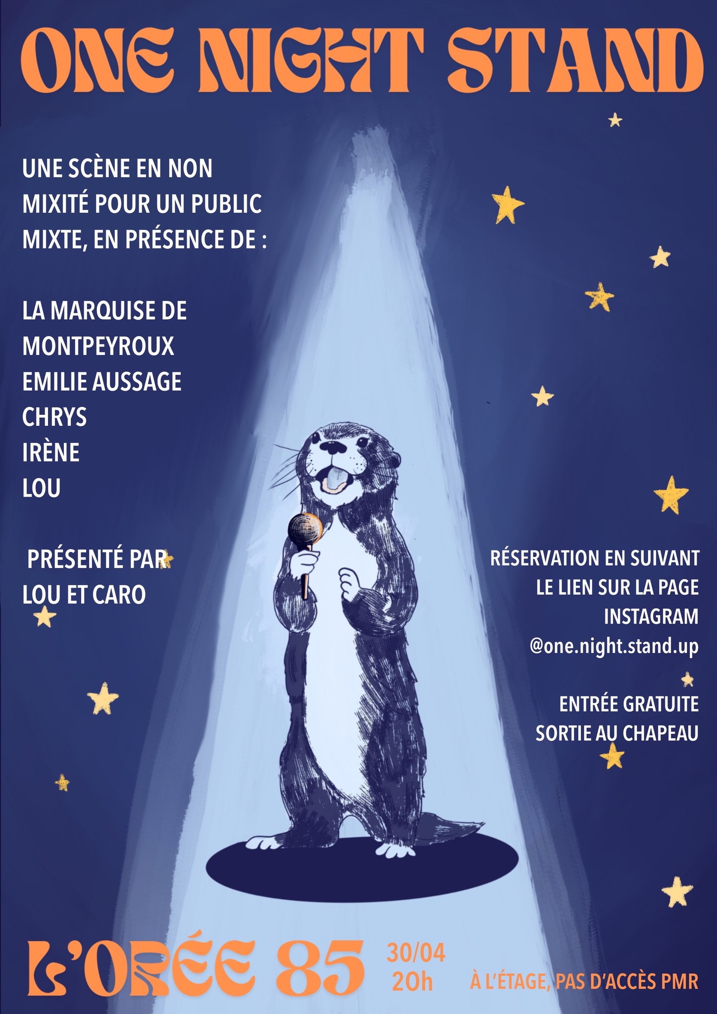 Nous nous retrouvons ce jeudi 30/04, 20h, à l'Orée 85 pour une soirée stand-up en non-mixité, pour un public mixte.