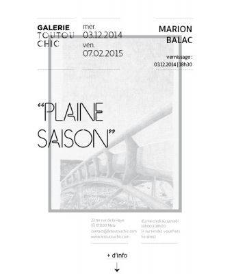 Du 3 décembre au 7 février, la galerie TouTouChic présente l’exposition "Plaine saison" de Marion Balac.