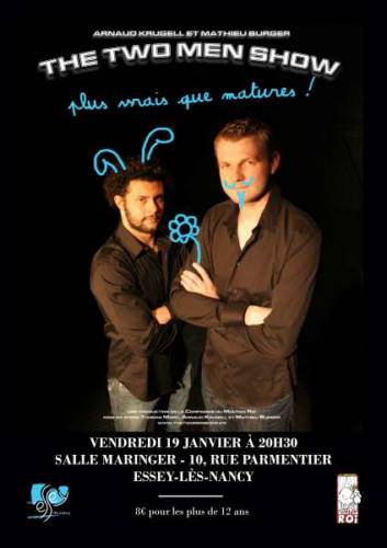 10 ans après leurs premiers pas sur scène, Arnaud et Mathieu espéraient enfin écrire le spectacle de la maturité ! Et bien... c’est raté ! Fidèles à leur autodérision et au plaisir qu’ils prennent à partager un univers décalé, les Two Men Show gardent leurs regards d’enfants, au mieux d’adolescents, sur ce monde un peu trop grave et sérieux.