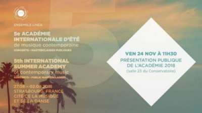Rendez-vous en salle 23 du Conservatoire pour une courte présentation de l’académie internationale linea 2018, images vidéo à l’appui, qui sera suivie d’un cocktail !