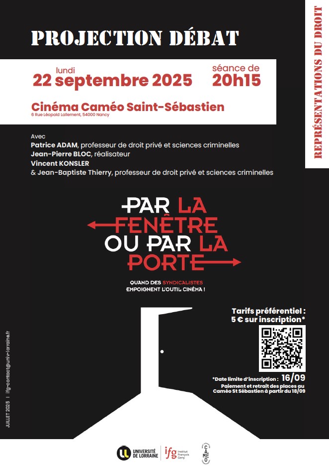 Organisé sous la direction scientifique de Jean-Baptiste THIERRY, professeur de droit privé et sciences criminelles, dans le cadre du cycle de conférences les représentations du droit.