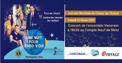 Enfants Cancers Santé Grand Est organise le 15 février à Metz un concert avec VENEREM au profit de "2500 Voix".