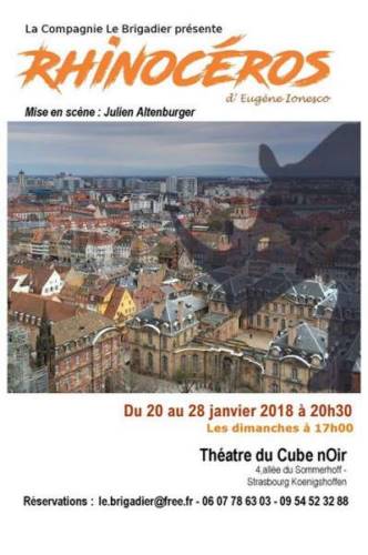 Les Rhinocéros entrent en scène du 20 au 28 janvier 2018 au Cube nOir de Strasbourg Koenigshoffen!