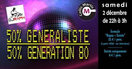 Le Collis Martis vous donne RDV pour faire la fête, ce samedi 2 décembre. Programme musicale généraliste et années 80 ! Tous les tubes pour vous éclater : dance, soleil, latino, rock, reggae...et Stars 80 !