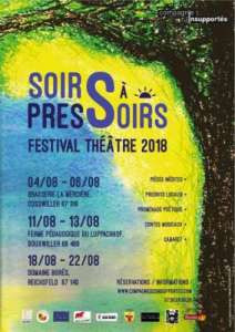 Pour la troisième année consécutive le Festival Itinérant de Théâtre « Soirs à Pressoirs » tournera dans des fermes et domaines d’Alsace cet été !