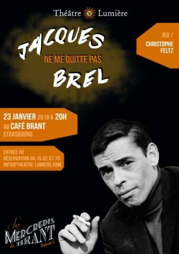Au cours de cette lecture spectacle, vous entendrez les textes (et parfois même des extraits de chansons) de ses « incontournables » devenus cultes tels que Ne me quitte pas, les bonbons, les bourgeois, Madeleine, Vesoul, Bruxelles…mais vous découvrirez aussi d’autres textes plus méconnus, de véritables petites perles rares et précieuses de ce grand poète qu’est Monsieur Jacques Brel.