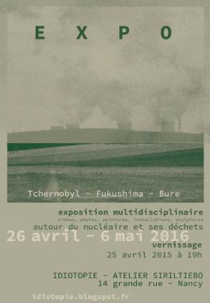 L’exposition Tchernobyl – Fukushima – Bure est organisée dans le cadre de la Course de lenteur (c’est le dernier arrivé qui gagne !), qui se tiendra le samedi 30 avril, à partir de 14 heures, place Stanislas, à Nancy, pour célébrer les 5 ans du début de la catastrophe de Fukushima, les 30 ans du début de la catastrophe de Tchernobyl, les 37 ans de l’accident de Three Miles Island, les 59 ans du début de la catastrophe de Mayak, les 71 ans du début des catastrophes de Hiroshima et Nagasaki, les 2 400 et quelques explosions de bombes atomiques…