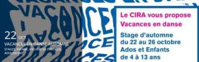Le CIRA vous propose le stage "Vacances en danse" Automne qui se déroulera du 22 au 26 octobre.