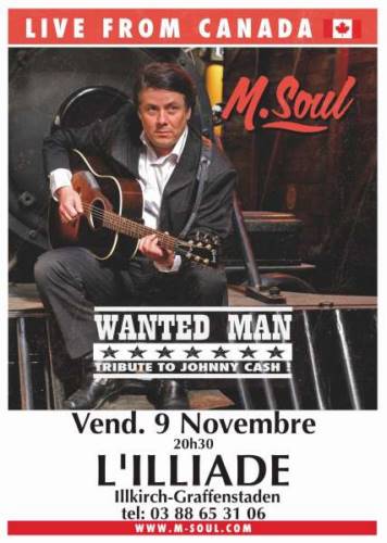 M.SOUL, né Marcel Soulodre, auteur-compositeur originaire de Winnipeg (Canada), perpétue la tradition du Rock ‘n Roll et de la Country depuis des années aussi bien à travers ses propres compositions mais aussi des reprises de chansons qui l’ont marqué depuis son enfance. C’est ainsi qu’il décide en 2003 de créer le show « Wanted Man » à travers lequel il célèbre la vie, la carrière et les chansons de Johnny Cash. Le décès de « L’Homme en Noir » la même année, propulse M.SOUL sur les scènes à travers tout le continent Nord-Américain.