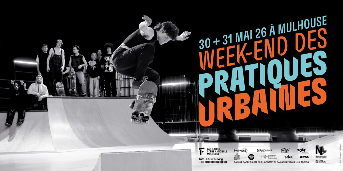 Rollers, skateboards, trottinettes et fans de parcours urbains prendront d’assaut La Filature pour un week-end consacré aux pratiques urbaines les 30 et 31 mai ! La météo annonce qu’un puissant vent de liberté soufflera sur le Nouveau Bassin déposant un skatepark sur la grande scène de La Filature et des espaces d’initiation sur le parvis. Au programme, le parcours bodies in urban spaces de Willi Dorner fera traverser la ville à une trentaine de performeur·euses mulhousien·nes. À La Filature, vous aurez le choix entre le spectacle « mi-ballet, mi-rave party » de la suédoise Mette Ingvartsen et une roller party, sans oublier des espaces dédiés aux graffeur·euses, aux rappeur·euses, aux DJs…. Il y en aura pour tous les goûts et tous les âges ! Le tout présenté dans le cadre du OFF du NL Contest, avec la complicité du CSC Le BOAT, de l’association Totality Street, du Squ’Art et du label Maight Vision, de musicien·nes de l’Orchestre National de Mulhouse, de la Médiathèque et de l’Office du Tourisme de Mulhouse.