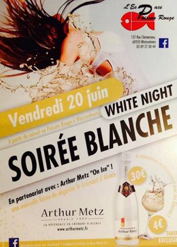 Let’s GO ! C’est vendredi au poisson rouge ! WHITE NIGHT la soirée blanche by Arthur Metz ... Venez découvrir le crémant "ICE" ! Tarifs exceptionnels : 30 euros la bouteille de crémant ICE et 4 euros le verre Piscine