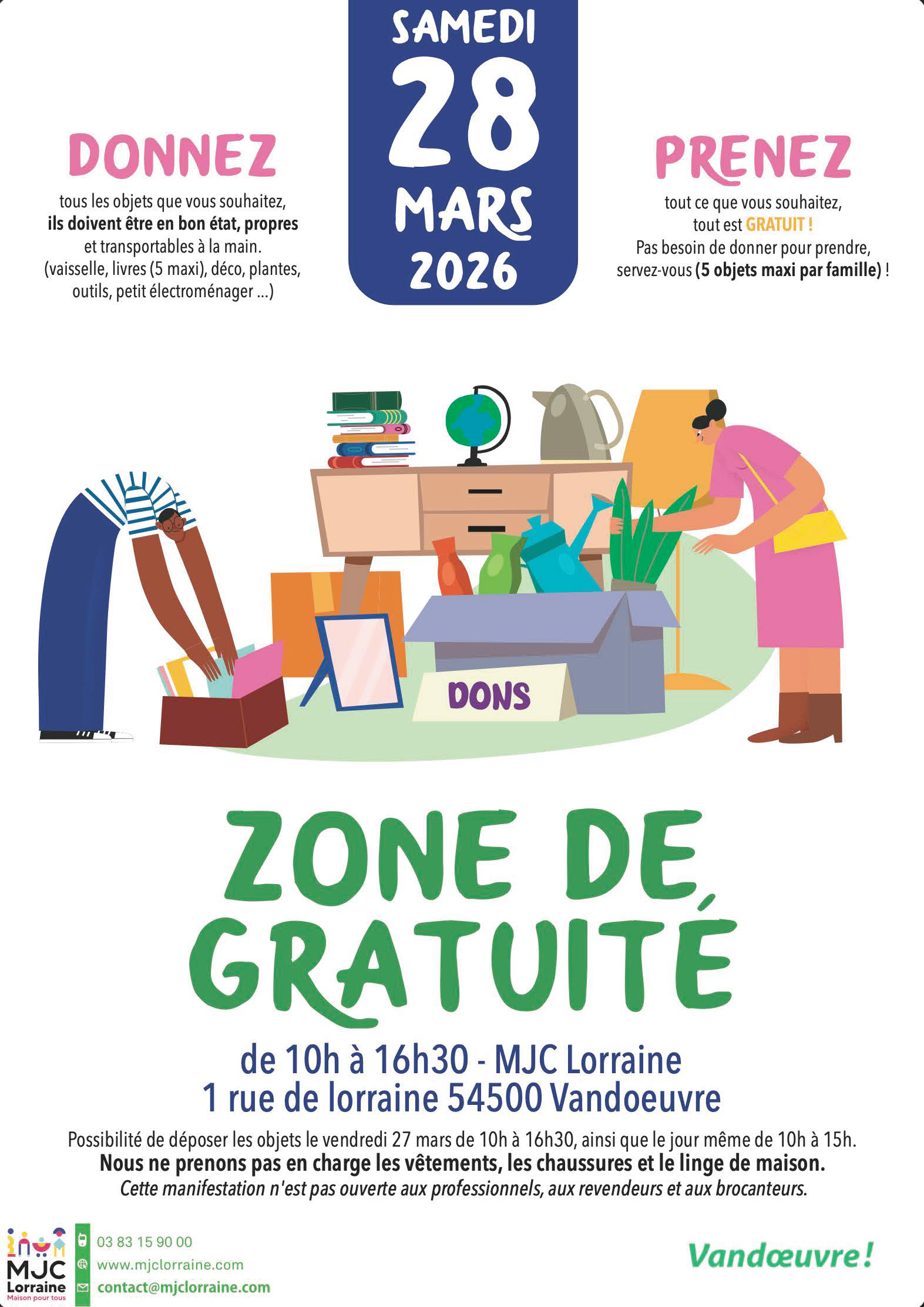 La zone de gratuité revient le 28 mars à la MJC Lorraine de 10h à 16h30 ! 🥳🥳🥳