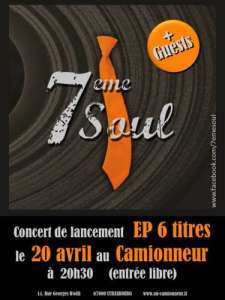 Pour son 7ème anniversaire, et après avoir parcouru de nombreuses scènes, 7eme Soul est de retour à Strasbourg pour la présentation de leur Enregistrement Professionnel 6 titres (EP6) pour le plus grand plaisir des amateurs de Soul.