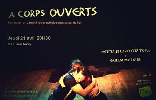 Quel est ce lien permanent à l’autre qui scuplte et perturbe sans cesse notre solitude, notre identité? Quels mots, quelles images réflexives poser sur cette question essentielle? A corps ouverts est une recherche d’images chorégraphiques et de récits permettant de nourrir un questionnement. Trois personnages féminins sont explorés en récit: La malédiction de Macha, la mésaventure d’Ishtar aux enfers, la sorcière guérisseuse. Quatre liens sont tissés, investis et posés en cercles rituels, comme les quatre éléments qui nous constituent: la matrice, le lien fraternel, le lien amoureux, le lien social.