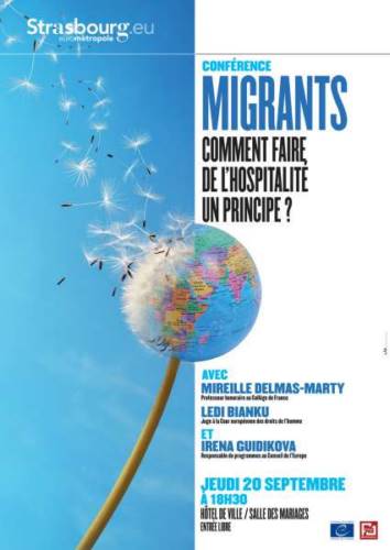 « Accueillir, c’est rendre le monde commun », écrivait le philosophe Emmanuel Levinas. Cette exigence de construction d’un monde commun, qui mieux que la juriste Mireille Delmas-Marty ne l’a comprise - « Face au désastre humanitaire qui accompagne les migrations humaines, l’hospitalité n’est pas affaire de morale ni de philanthropie. C’est une évidence et une urgence », plaidait-elle récemment dans une tribune publiée dans le journal Le Monde le 12 avril dernier. Alors qu’un « pacte mondial pour des migrations sûres, ordonnées et régulières » est en cours de négociation en vue de son adoption dans le cadre d’une conférence intergouvernementale prévue en décembre 2018 au Maroc, la Ville de Strasbourg organise, en partenariat avec le Conseil de l’Europe et Sciences Po Strasbourg, une conférence exceptionnelle afin de débattre de ce nouveau modèle de gouvernance mondiale des migrations humaines.