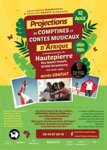 Dans le cadre de notre travail sur l’éveil des enfants à leur identité africaine, le collectif Ubuntu fera une projection de contes africains le Dimanche 12 Août 2018 à partir de 16h au stade de rugby de Hautepierre, Rue Baden Powell, 67200 Strasbourg.