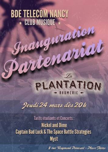 Le BDE de Télécom Nancy vient de conclure un juteux partenariat avec le bar sus-nommée, La Plantation. Comme on vous sait amateurs de rhum ou d’alcools en tout genre, nous vous proposons une soirée à triple but: