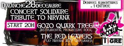 Né de la fusion des combos punks sélestadiens « The Red Undies » et « ZoneLeaver », le collectif éphémère « The Red Leavers » s’est formé le temps d’intégrer le répertoire du mythique « Nirvana MTV Unplugged ». Plutôt habitués à faire s’affoler les compteurs de décibels, les 5 musiciens ont décidé de rendre un hommage acoustique vibrant à une idole disparue il y a 20 ans cette année, le charismatique et torturé leader de Nirvana, Kurt Cobain. Idole de jeunesse pour les uns, source d’inspiration intemporelle pour d’autres, son énergie teintée de rage a indéniablement inspiré des générations de rockeurs. Les membres du collectif ne font pas exception à la règle, et sont impatients de partager la passion commune qui les anime. La restitution des quelques mois de travail se fera sur la scène du Tigre, dans le cadre d’un concert solidaire au profit des Restos du Cœur
