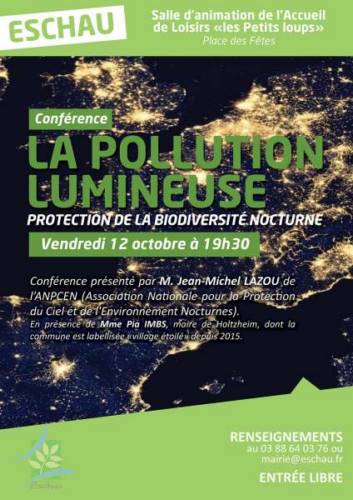 Conférence sur la pollution lumineuse par Jean-Michel Lazou de l’ANPCEN : causes, effets, remèdes et actions concrètes. En présence de Madame Pia Imbs, maire de Holtzheim, dont la commune est labellisée "village étoilé" depuis 2015.