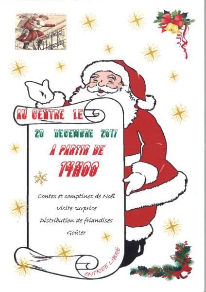 L’heure des contes est arrivée, aussi le 20 Décembre, le Centre social sera en effervescence, en effet, une après-midi, contes et comptines de Noël est organisée en attendant la visite du grand bonhomme rouge. La conteuse parée de ses beaux habits et dans un décor annonçant Noël contera de belles histoires. Pour les enfants sages, une distribution de chocolats de la main du Père Noël aura lieu et un goûter sera offert. A partir de 4 ans.