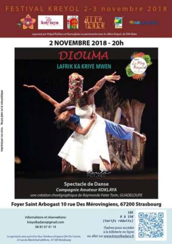 Dans le cadre de la journée internationale de la langue et de la culture créole et du Festival du "Mois du Kreyol", la compagnie Guadeloupéenne Koklaya est de passage à Strasbourg pour représenter son spectacle "DIOUMA, L’Afrik Ka Krié Mwen", spectacle de danse avec musique live qui mélange danse traditionnelle de Guadeloupe (le gwoka) avec la danse africaine et la danse contemporaine. Une création chorégraphique de Raymonde Pater Torin, figure incontournable du milieu artistique en Guadeloupe.