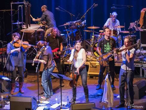 Prenant le prétexte de ses 10 ans, l’Orchestre Tout Puissant Marcel Duchamp joue et voyage aujourd’hui dans une formule extra large, avec 14 musiciens sur scène. Quelques anciens membres du groupe mêlés à de petits nouveaux, poussent l’aventure plus loin plus haut.